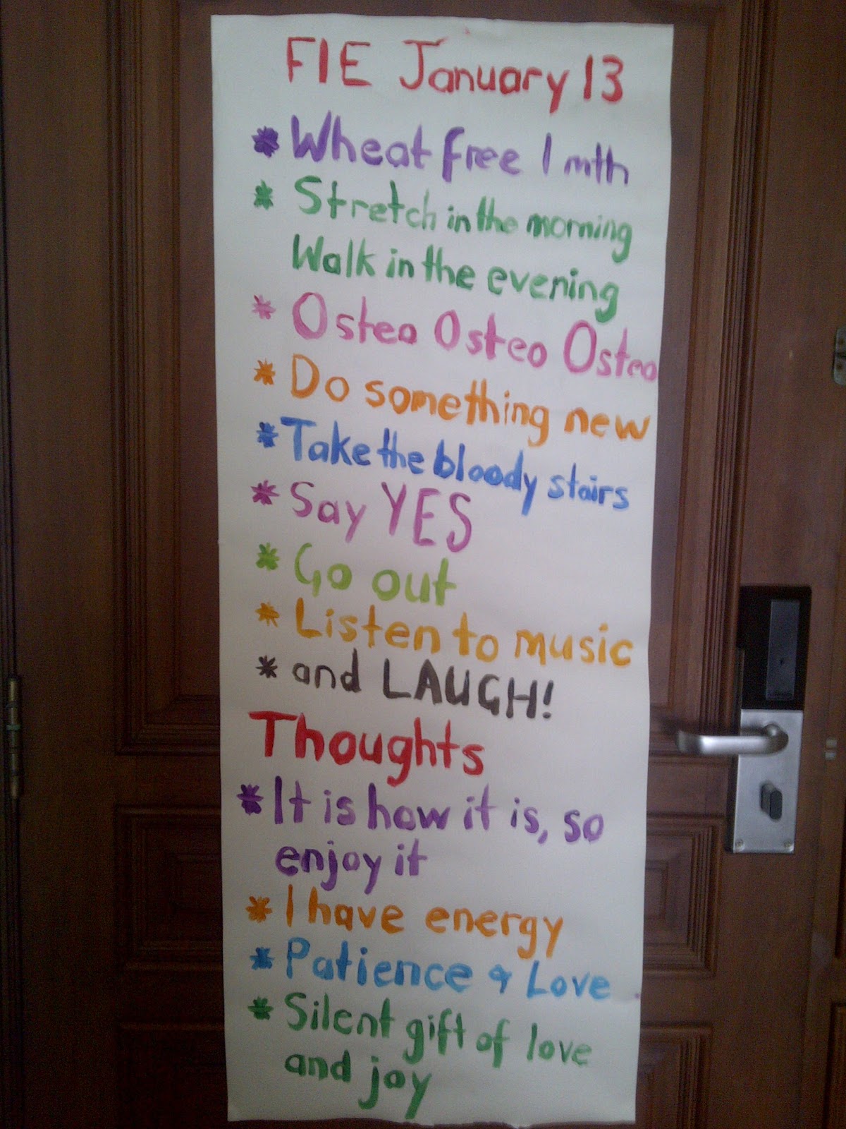 Focus for FIE January 2013 – and this elegantly scribed list is now pasted to my front door