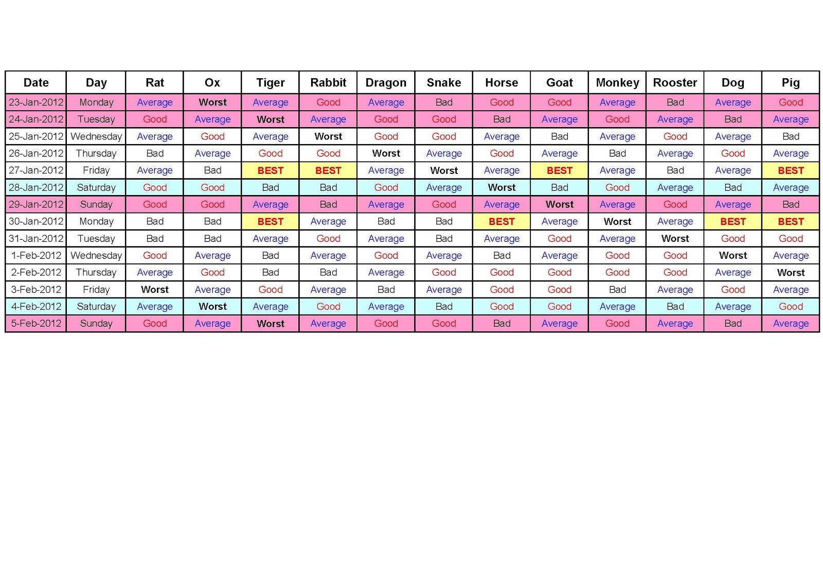 I’d better leave Miin in peace because she has a lot to do. In the meantime, she’s given me an auspicious calendar (see below), and based on my Chinese Horoscope, I am not to turn my computer on or do any work this coming Monday, but Wednesday is a very good day for me. Cool, got that locked, loaded and scheduled in Outlook.