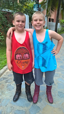 | The boys got some custom cowboy boots made in Hoi An. They wore them to breakfast – noice! |